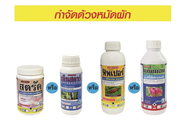 2. ป้องกันกำจัดโดยใช้สารเคมี แนะนำ สตรัค 10 กรัม หรือ เท็นสตาร์ 10 ซีซี หรือ ฟิพเปอร์ 30 ซีซี หรือ