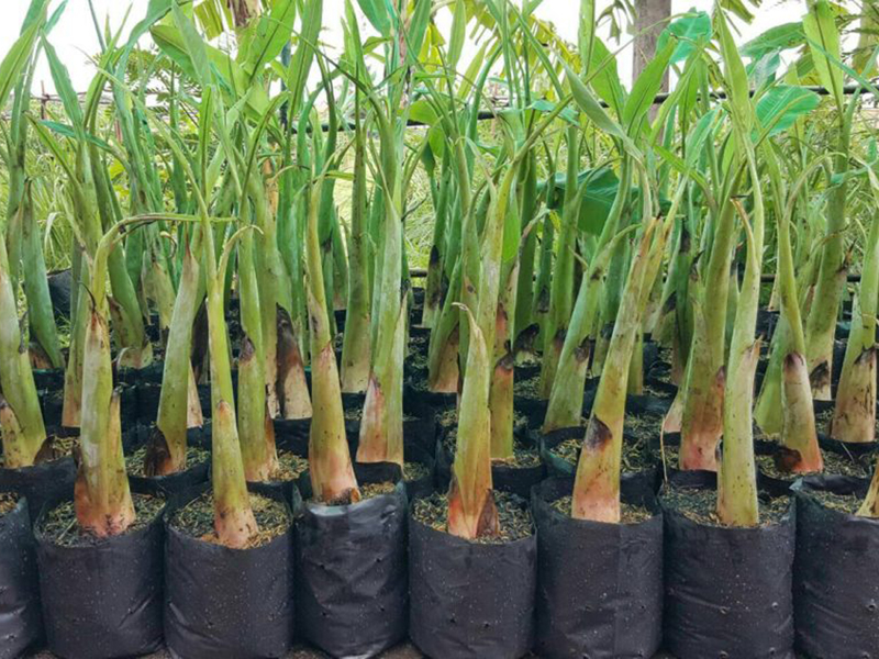การดูแลรักษาแปลงปลูก ควรจะมีการทำรุ่นหรือปราบวัชพืช เมื่อต้นกล้วยยังเล็ก ควรจะมีการพูนโคนเมื่อกล้วยอายุได้ 8 เดือน ตัดแต่งใบ