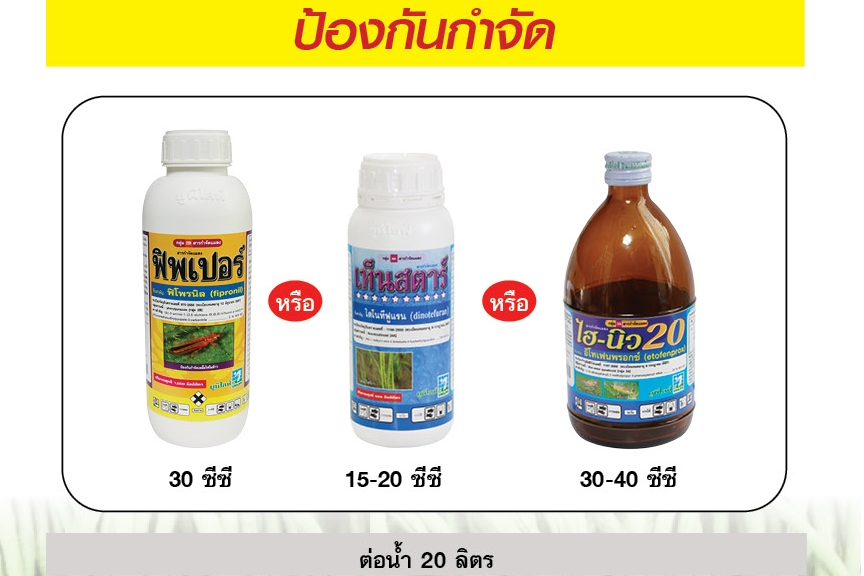 • สำรวจแมลงหากพบตัวเต็มวัยของหนอนเจาะฝัก หากพบใช้ ฟิพเปอร์ 30 ซีซี หรือ เท็นสตาร์ 15-20 ซีซี หรือ ไฮ-นิว20 30-40 ซีซี   ต่อน้ำ 20 ลิตร ฉีดพ่นในระยะถั่วเริ่มติดฝักอ่อนจนถึงเก็บผลผลิต