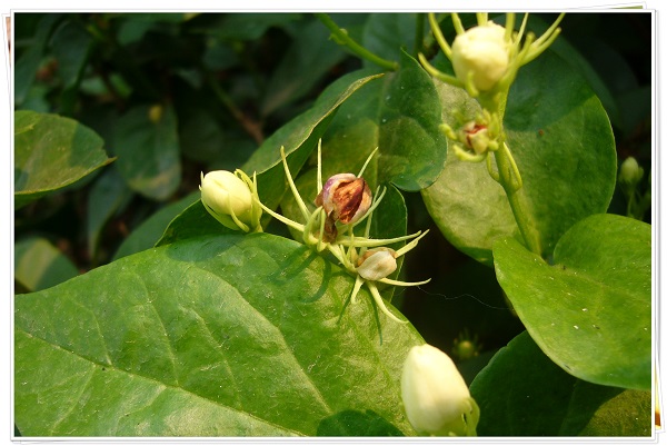 เป็นสีม่วง สีน้ำตาลแห้ง เหี่ยวแห้งและร่วงหล่น กรณีถ้าต้นมะลิไม่มีดอกหนอนจะเข้าทำลายกัดกินใบอ่อนหรือยอดอ่อน