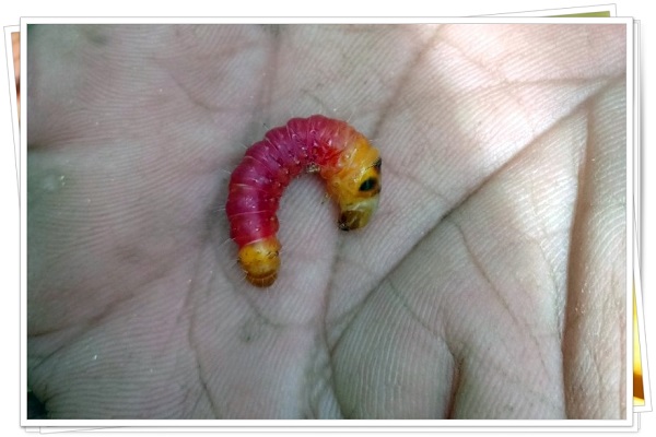 โตเต็มที่จะเปลี่ยนเป็นสีแดง ตัวหนอนจะเจาะเข้าไปในกิ่งหรือลำต้น และกัดกินเนื้อเยื่อภายในเป็นโพรงยาว