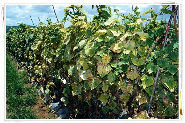 แฟง บวบ เสียหายรองลงมา สำหรับแตงโมพบเป็นบ้างแต่ไม่มากและไม่ร้ายแรงนัก
