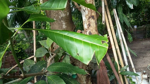 2. การใช้สารกำจัดแมลงฉีดทำลายแมลงศัตรูมะม่วงชนิดอื่น ควรมีผลเพียงพอควบคุมด้วงกัดใบชนิดนี้ด้วย