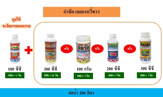 2. เก็บส่วนของพืชที่พบแมลงหวี่ขาวนำไปเผาทำลาย และทำความสะอาดแปลงและบริเวณรอบๆแปลง ภายหลังการเก็บเกี่ยว เพื่อไม่ให้เป็นแหล่งอาศัยของแมลงหวี่ขาว