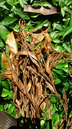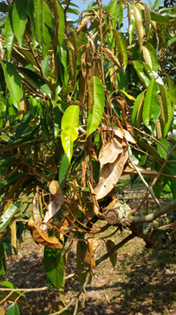 1. หากพบอาการยอดแห้ง กรอบดูจากสีใบสีขาวหรือสีน้ำตาล ไม่หลุดจากกิ่ง ให้ตัดกิ่งหรือยอดนั้นมาเผาแบบปิด คือไม่ให้มีควันป้องกันการฟุ้งกระจายของโรค