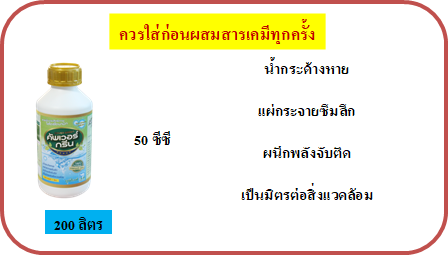 เพิ่มเติม    เพื่อประสิทธิภาพที่ดีกว่าควรใช้  คัพเวอร์กรีน ใส่ก่อนผสมสารเคมีทุกครั้ง