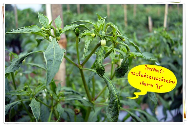ลงมายังใบล่างๆ ทำให้พริกชะงักการเจริญเติบโต แคระแกรนไม่ติดผล