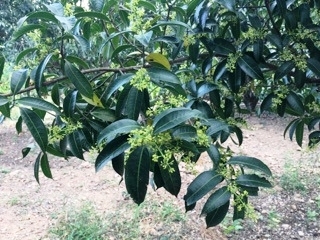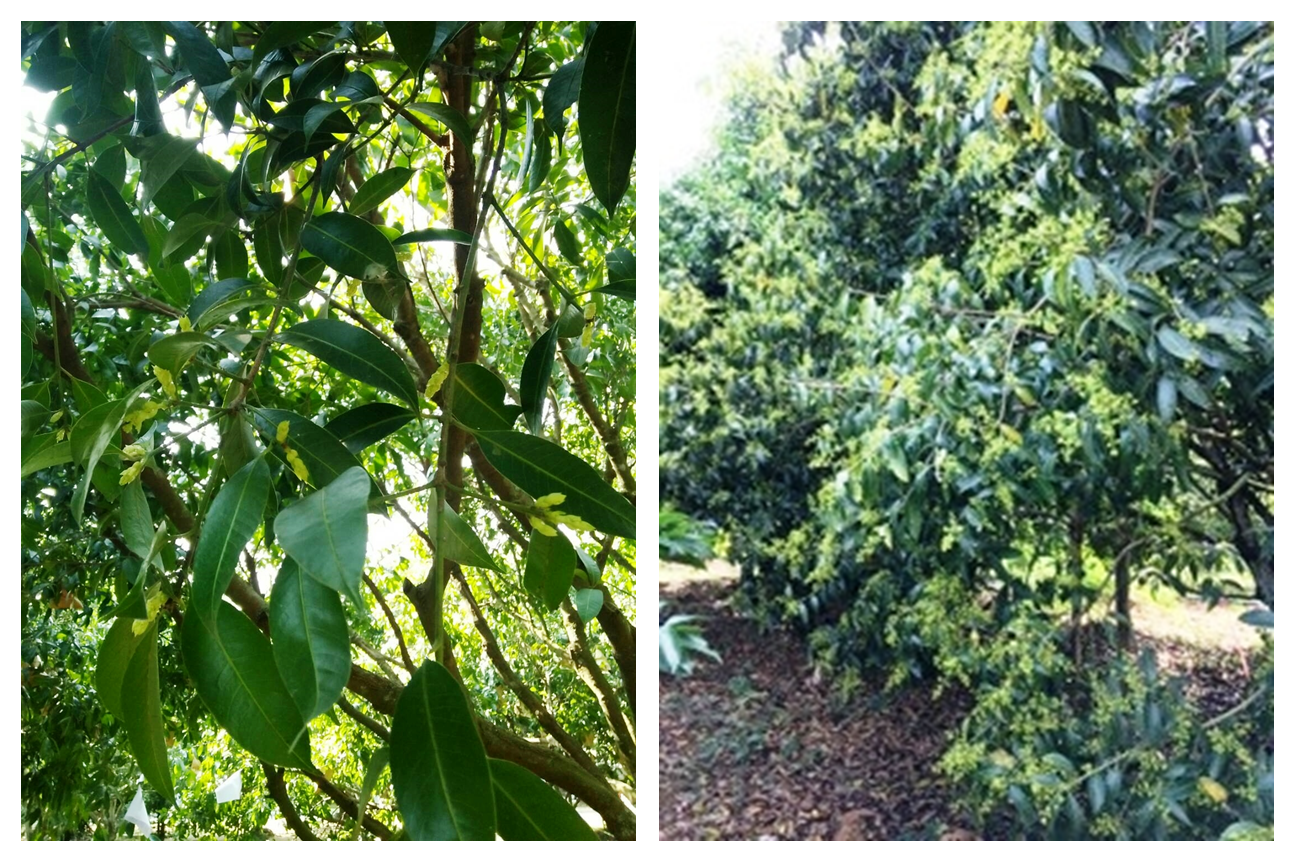 มะยงชิดระยะเดือยไก่ (ภาพซ้าย)    ||   หลังพ่น 1-2 ครั้งดอกจะออกสม่ำเสมอติดดก (ภาพขวา)