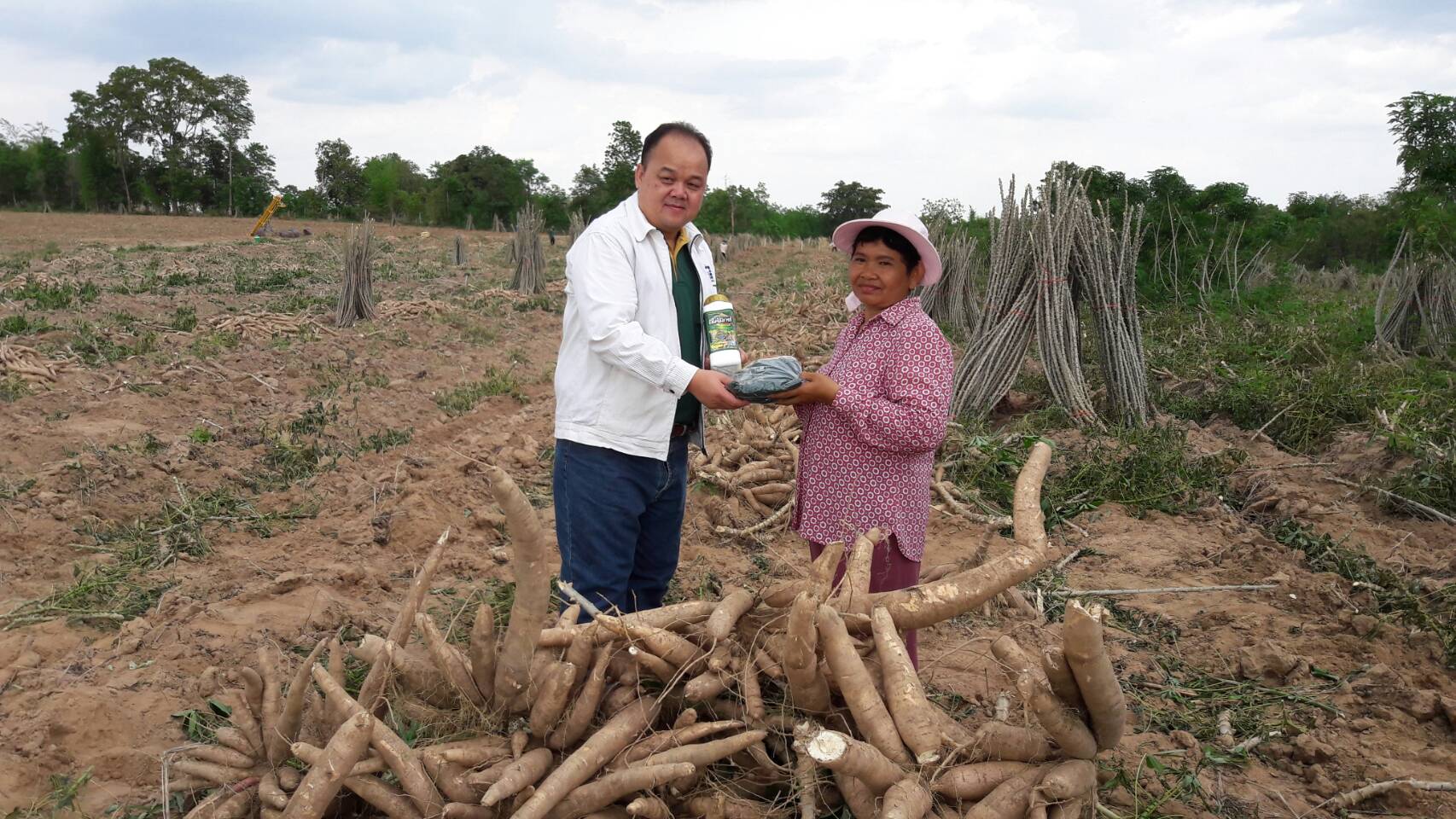 คุณเฉลิมเกียรติ มงคลธรรมากุล กรรมการผู้จัดการ และ คุณ สนธยา เข็มทอง ผู้จัดการภาคอาวุโส บริษัท ยูนิไลฟ์ อินเตอร์เนชั่นแนล จำกัด นำทีมเกษตรกรผู้สนใจกว่า 30 คน เดินทางไปเยี่ยมชมแปลงสาธิตต้นแบบการเพิ่มผลผลิตมันสำปะหลังของ คุณน้อม เจตนาดี ที่ใช้สินค้า ยูนิไลฟ์มานานถึง 5 ปี ในการปลูกมันสำปะหลัง 400 ไร่ ซึ่งในปีที่ผ่านมาได้ปลูกมันสำปะหลังฝ่าวิกฤติภัยแล้งแต่สามารถเพิ่มผลผลิตเฉลี่ยต่อไร่ มากถึง 8 ตัน/ไร่ โดยการเยี่ยมชมแปลงสาธิตในครั้งนี้คุณน้อมได้แนะนำ เคล็ดลับเทคนิคองค์ความรู้ในการเพิ่มผลผลิตและสูตรเด็ดมันสำปะหลังหัวใหญ่ที่ได้รับจากนักวิชาการเกษตรยูนิไลฟ์มาบอกต่อเกษตรกรที่เข้า เยี่ยมชมแบบไม่ปิดบัง ณ อ.ปักธงชัย จ.นครราชสีมา เมื่อเร็วๆ นี้