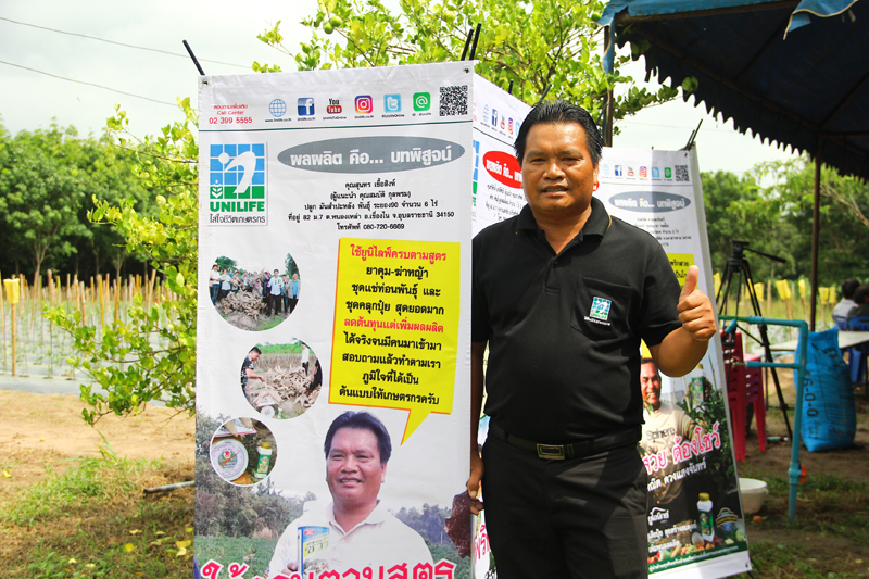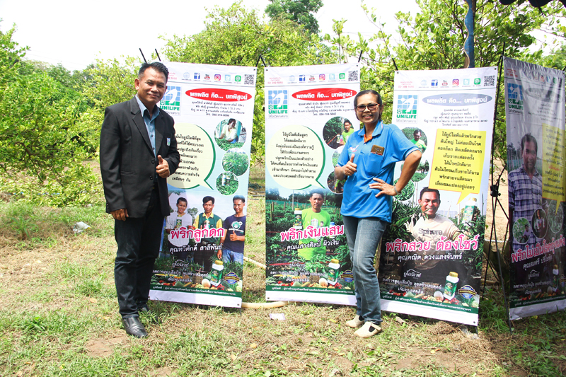 เมื่อวันที่16 กันยายน 2560 เกษตรกรที่สนใจเรื่องการปลูกพริกระบบน้ำหยดมากันจากหลายที่ เกษตรกรในละแวกนั้นยังปลูกพริกแบบเดิมๆกันได้ผลผลิตไม่เป็นที่พอใจ จึงมองหาแนวทางและวิธีการใหม่ๆ คุณสุนทร จึงได้แนะนำถึงการเตรียมแปลง การปูผ้าคลุมแปลง การวางระบบน้ำหยดรวมถึงการให้ปุ๋ยผ่านระบบน้ำหยด และวิธีการทำสาวพริก ทั้งนี้ในงานยังมีกิจกรรมสาธิตผลิตภัณฑ์เด่น “ยูโอนิกซ์” และ “คัพเวอร์กรีน” พร้อมทั้งแจกปุ๋ยผสมยูโอนิกซ์ ไปให้ทดลองใช้กันอีกด้วย สมาชิกที่มาร่วมงานต่างประทับใจ กันไปตามๆ กัน