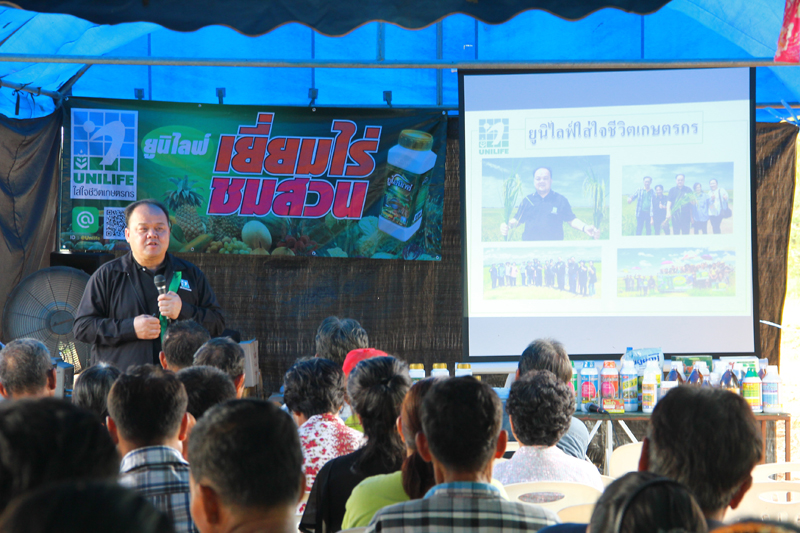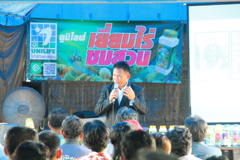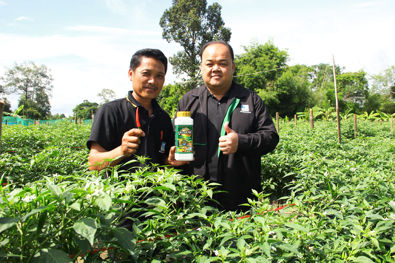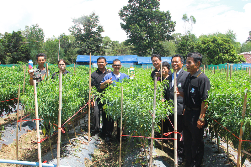 เมื่อวันที่ 17 กันยายน 2560 คุณเฉลิมเกียรติ มงคลธรรมากุล กรรมการผู้จัดการ  เป็นประธานเปิดงานกิจกรรมเยี่ยมชมแปลงปลูกพริกเงินแสนของคุณแสวงศิลป์ ผิวเงิน ที่ บ.โนนรังใหญ่ อ.ม่วงสามสิบ จ.อุบลราชธานี ที่นี่มีพริกโชว์กันหลายรุ่นหลายแปลงเลย ทำให้เกษตรกรที่มาได้ศึกษาแนวทางกันชัดเจน ทั้งการวางน้ำหยด คลุมผ้ายาง การทำสาว การให้ปุ๋ย-ยา และการป้องกันกำจัดศัตรูพืช เกษตรกรที่มาร่วมงานประทับใจมากที่ได้ฝึกการทำสาวพริกด้วยตนเอง นอกจากนี้ในงานยังมีกิจกรรมสาธิตผลิตภัณฑ์เด่น “ยูโอนิกซ์” และ “คัพเวอร์กรีน” อีกด้วย ใครที่มาต่างก็บอกว่าคุ้มสุดๆ คุณแสวงศิลป์บอกว่าแปลงนี้ตั้งใจทำมาเพื่อเป็นแปลงตัวอย่างให้เกษตรกรที่สนใจมาเรียนรู้การปลูกพริกแบบมืออาชีพ ในการจัดกิจกรรมครั้งนี้จึงนับว่าได้เป็นการแบ่งปันองค์ความรู้ให้กับเพื่อนเกษตรอย่างแท้จริง