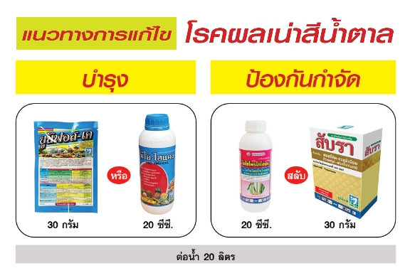 3.หากพบการระบาดของโรคควรพ่นสารป้องกันกำจัด ใช้ ไอโซโพรไทโอเลน 20 ซีซี สลับ สับรา 30 กรัม ต่อน้ำ 20 ลิตร อาบโชกทั้งต้น ทุกๆ 7-10 วัน