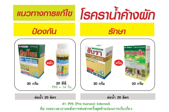4. ใช้สารป้องกันก่อนเกิดโรค เช่น บิซโทร 30 กรัม สลับ เบนเอฟ 20 ซีซี ต่อน้ำ 20 ลิตร