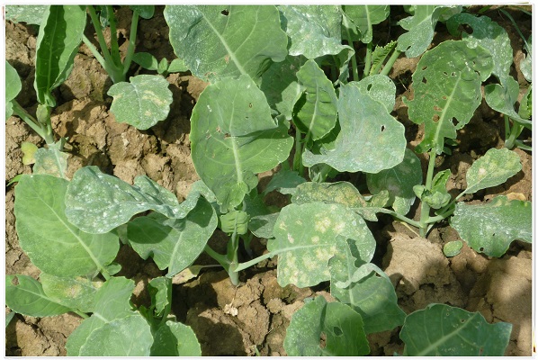 ช่วงอากาศหนาวเย็นและลมแรง เตือนเกษตรกรผู้ปลูกพืชผักตระกูลกะหล่ำเช่น คะน้า กวางตุ้ง กะหล่ำปลี กะหล่ำดอก ผักกาดขาว ผักกาดหอม และบรอกโคลี ให้เตรียมรับมือการระบาดของโรคราน้ำค้าง ที่สามารถพบได้ทุกระยะการเจริญเติบโตของพืช