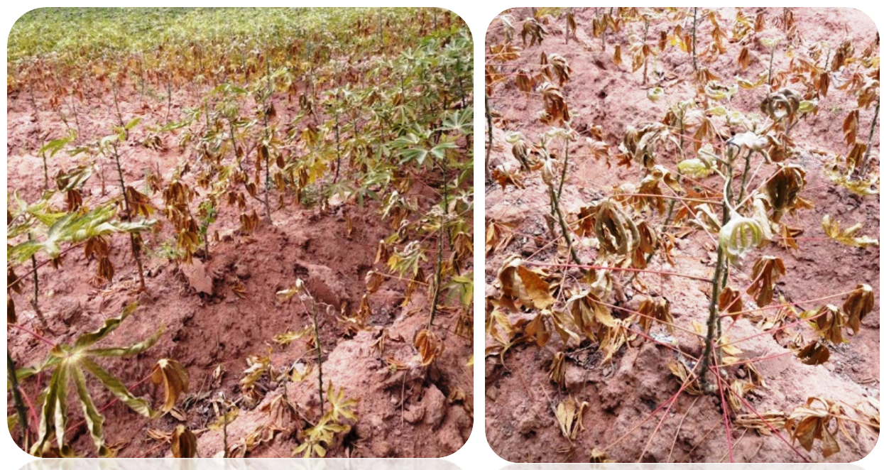 มันสำปะหลังที่ถูกไรทำลายรุนแรงมาก